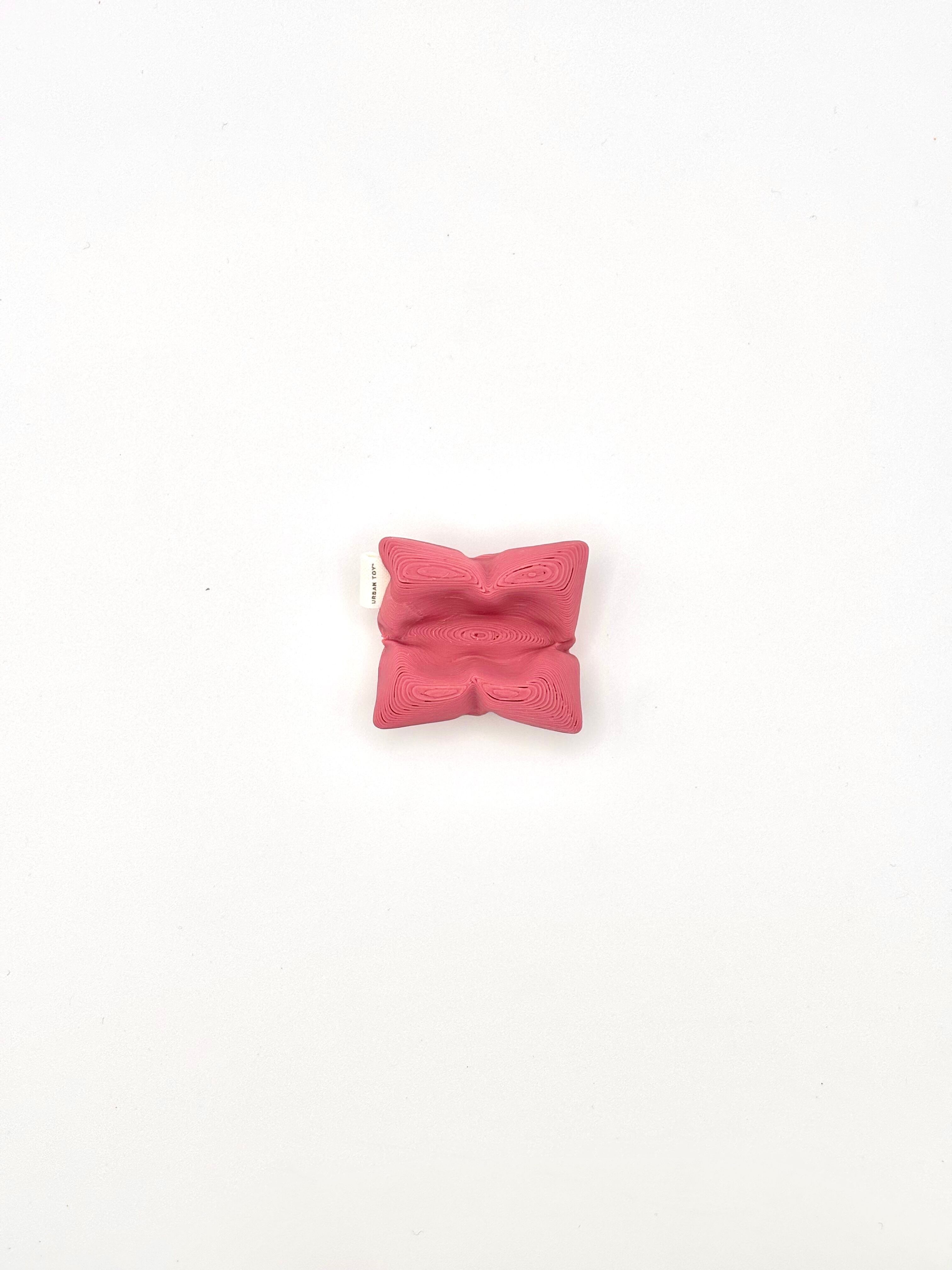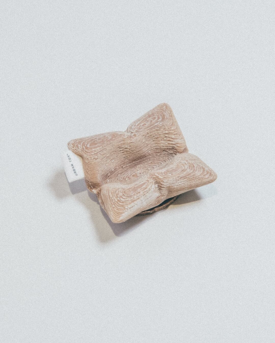 デジタルファブリケーション技術で丁寧に作り上げた、リング専用のクッション型ホルダーです。 クッションのようなやわらかなフォルムが指輪をやさしく受け止め、玄関先やドレッサー、デスクサイドなど、さまざまな場所で活躍します。